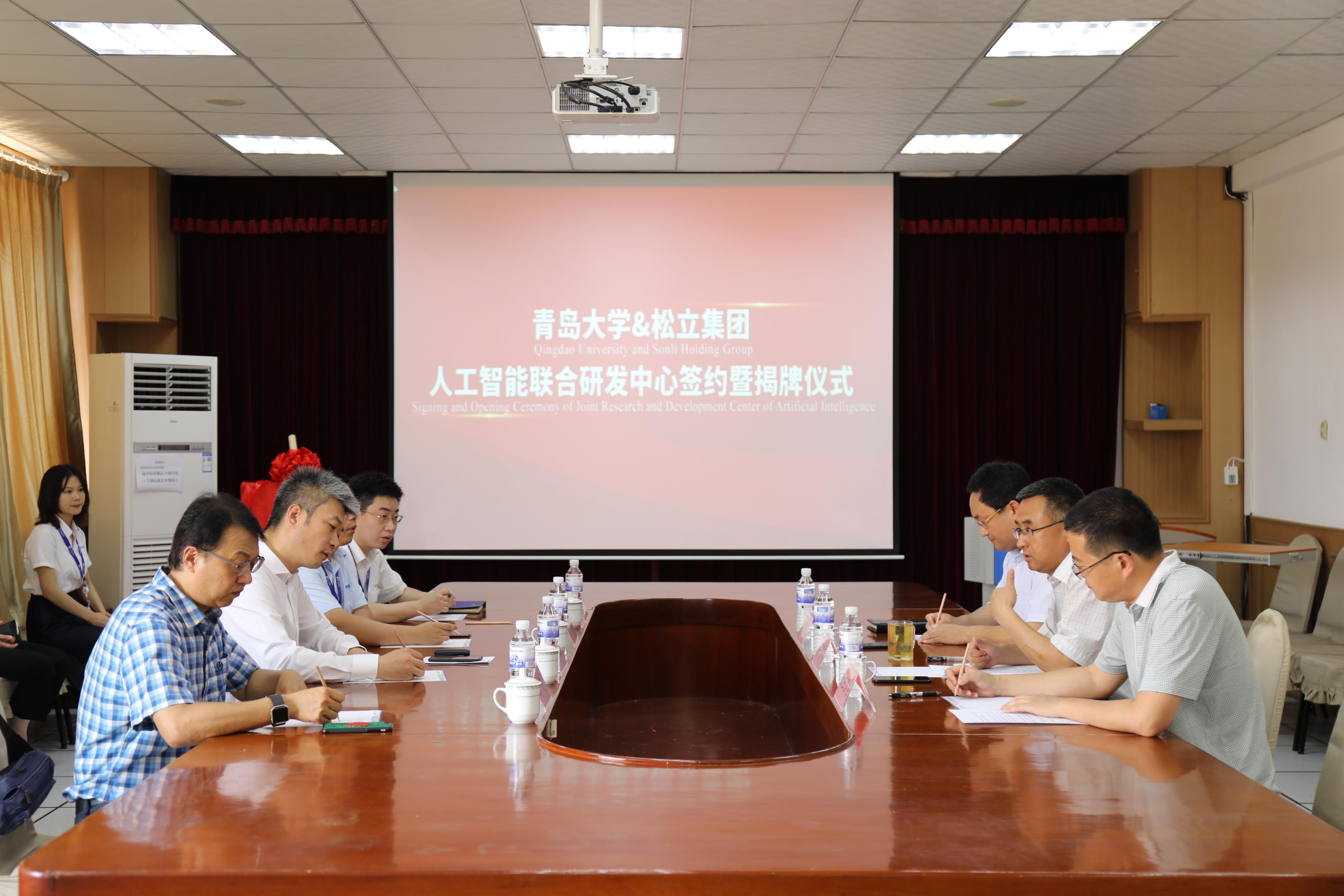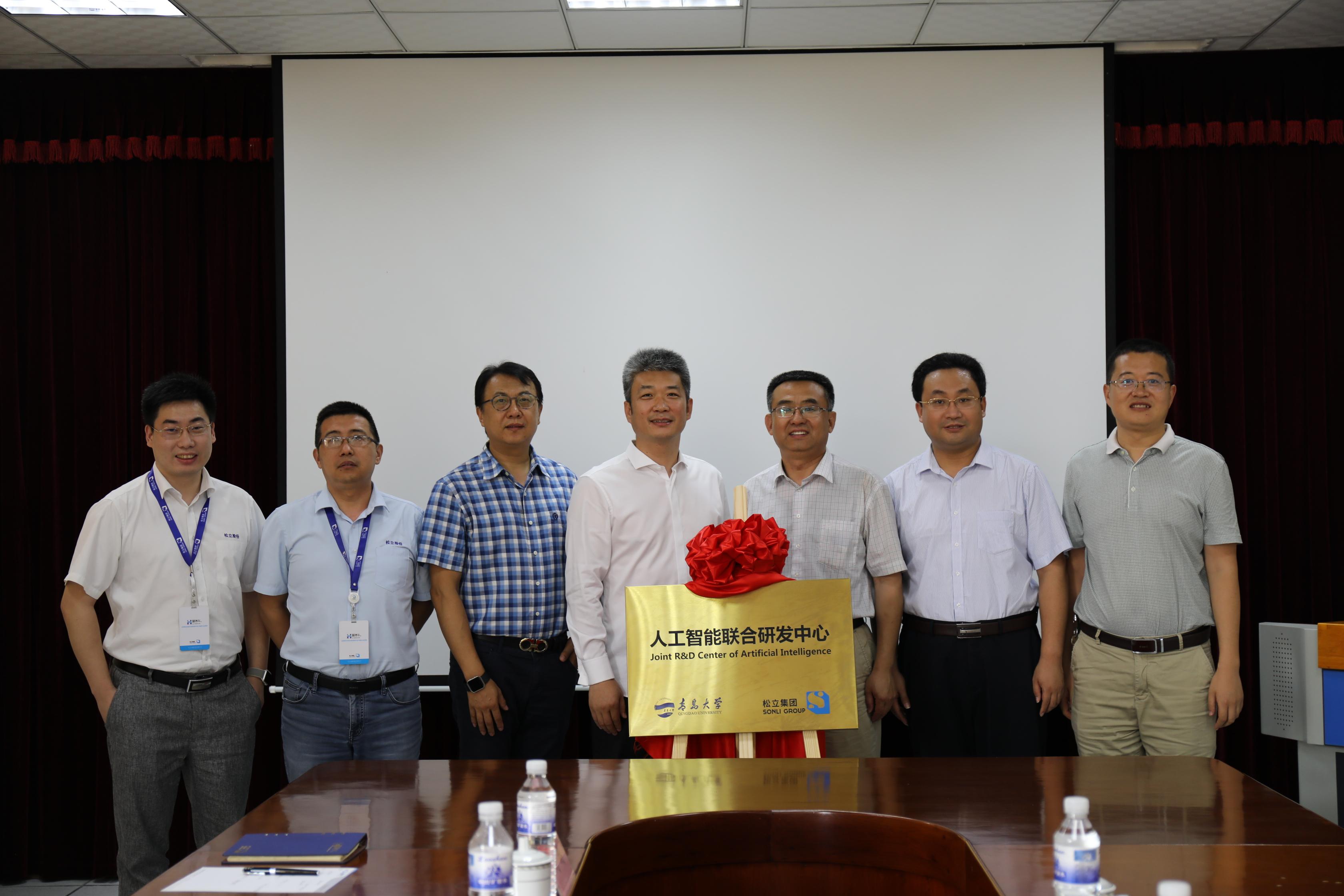 7月15日下午,玩球直播 与松立集团“人工智能联合研发中心”签约暨揭牌仪式在博知楼510会议室举行。院党委书记尹增刚、院长李建波、副院长王国栋及松立集团董事长刘寒松,副总经理高评、王永,研发总监刘瑞出席仪式。