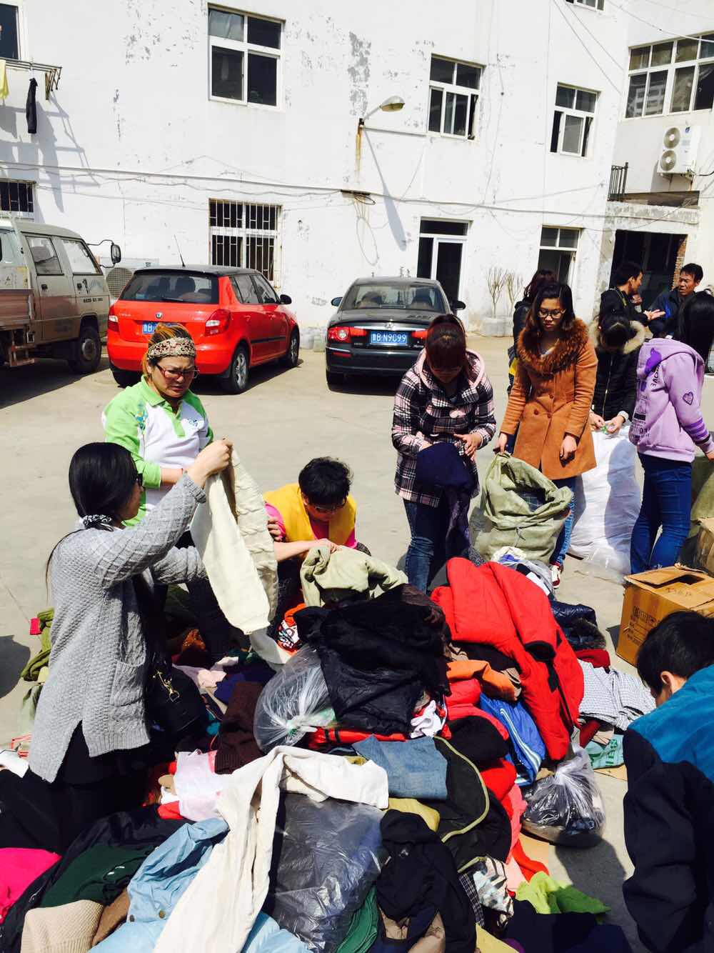 4月11日,学院18名志愿者赴刘家下河工业园物资捐助点为日喀则藏区孩子捐赠物资进行分类整理打包。