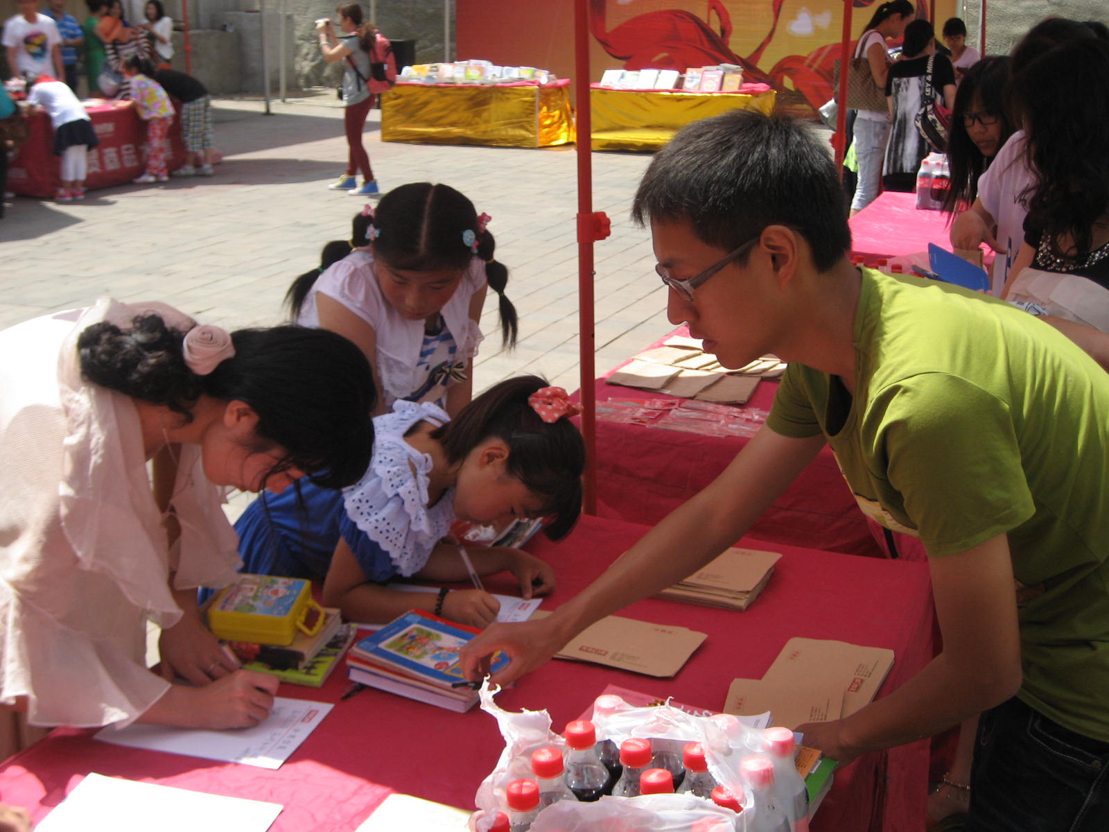 6月29日,由青岛早报与市文明办、可口可乐公司联合举办的“可口可乐红飘带”之“爱心图书进校园”大型公益活动在青岛外贸城启动,玩球直播 11名志愿者到捐书现场捐赠图书,并承担现场志愿服务工作。