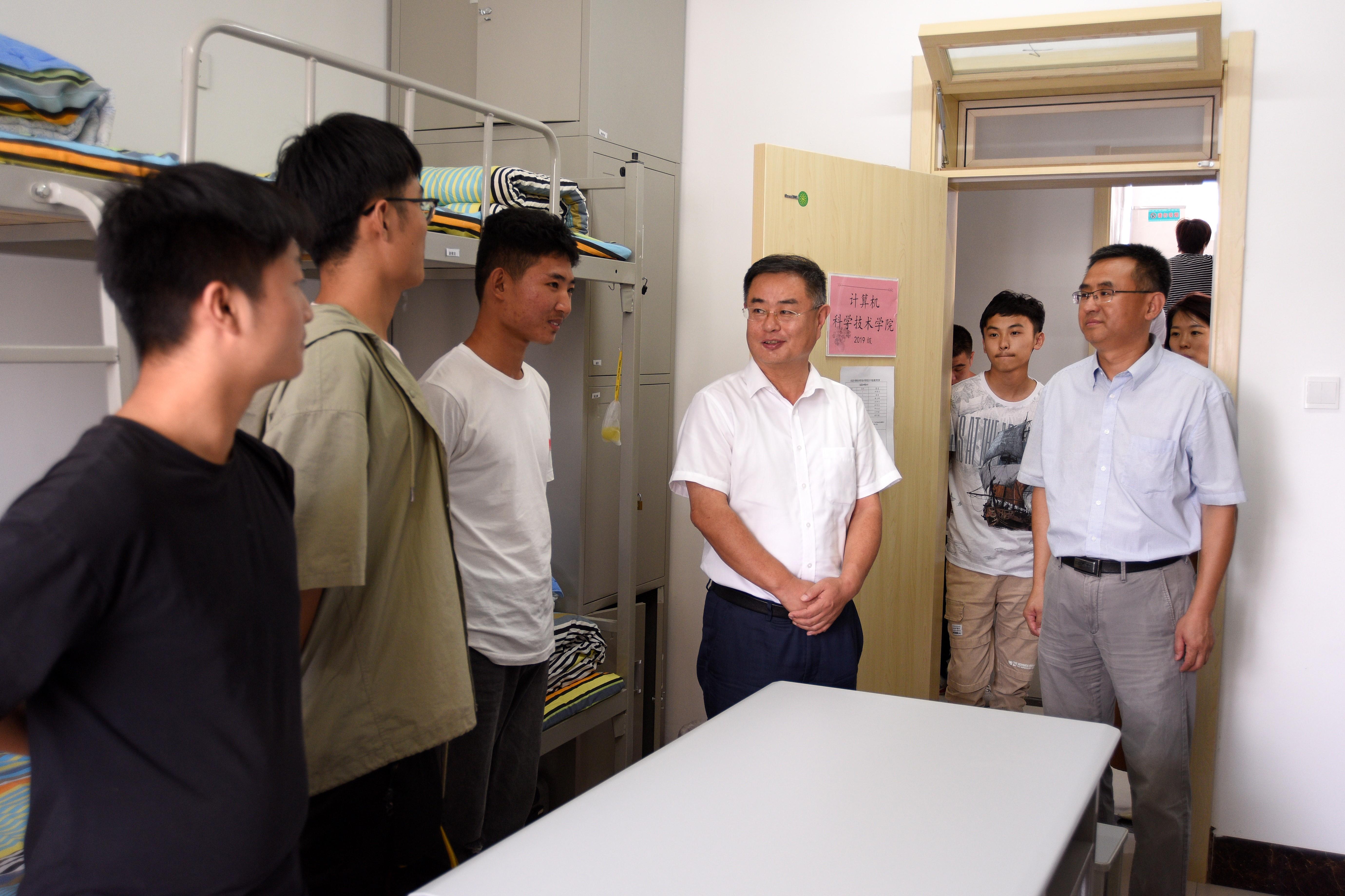 9月7日,2019级新生报到当天下午,校党委副书记、校长夏东伟走访泓园新生宿舍,看望了玩球直播 2019级新生代表。学生工作处(部)、后勤管理处负责同志和院党委书记尹增刚陪同走访。