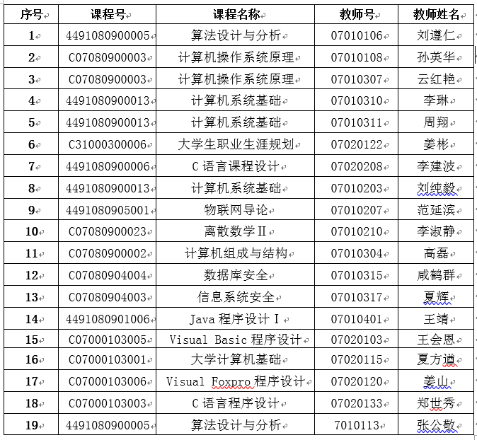 10月16日,学校教务处公布了2019年春季学期课堂教学质量评价优质课程名单(青大教字〔2019〕23号),玩球直播 各教学单位优质课程共计527门次,其中玩球直播 有19门课程入选。分别是: