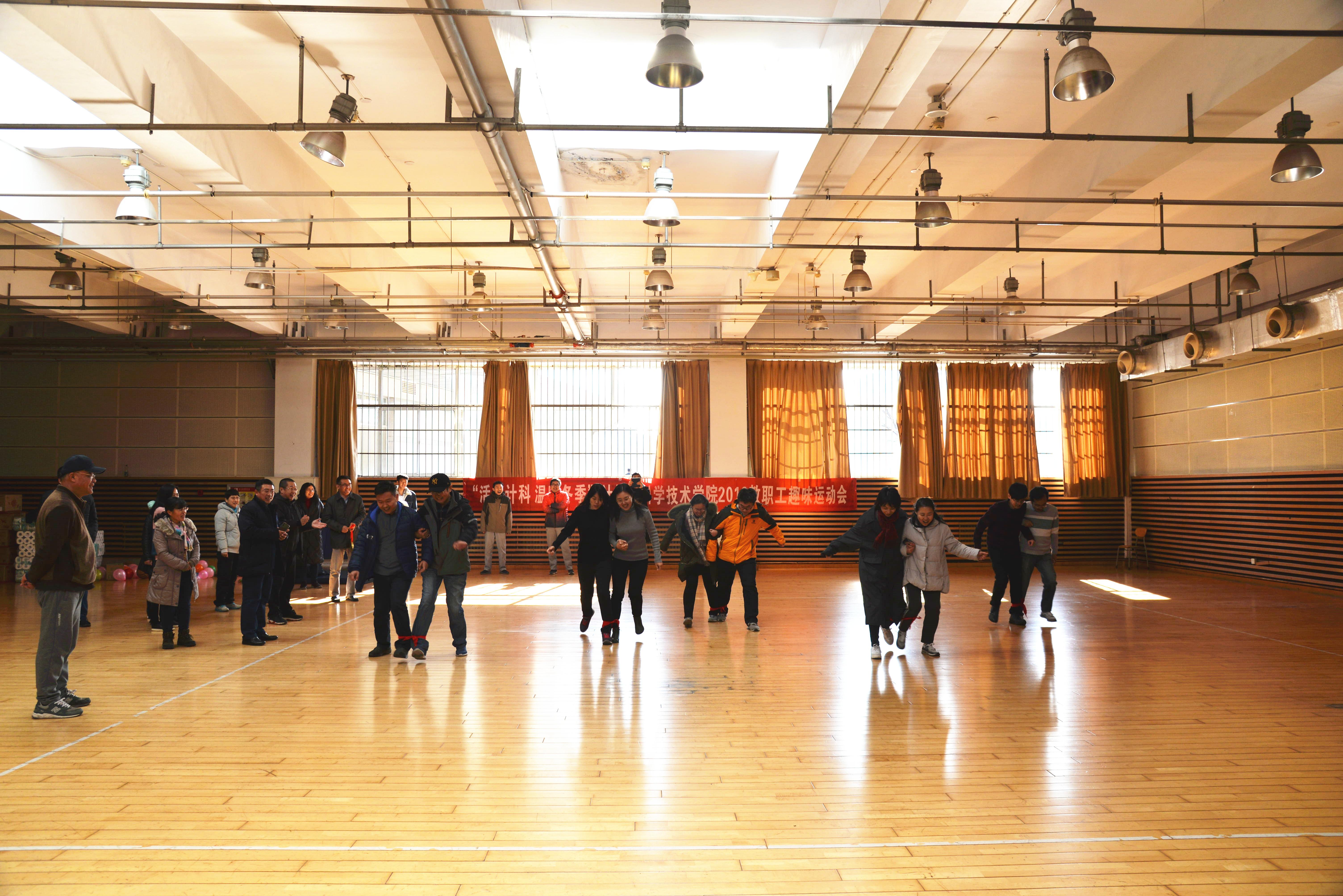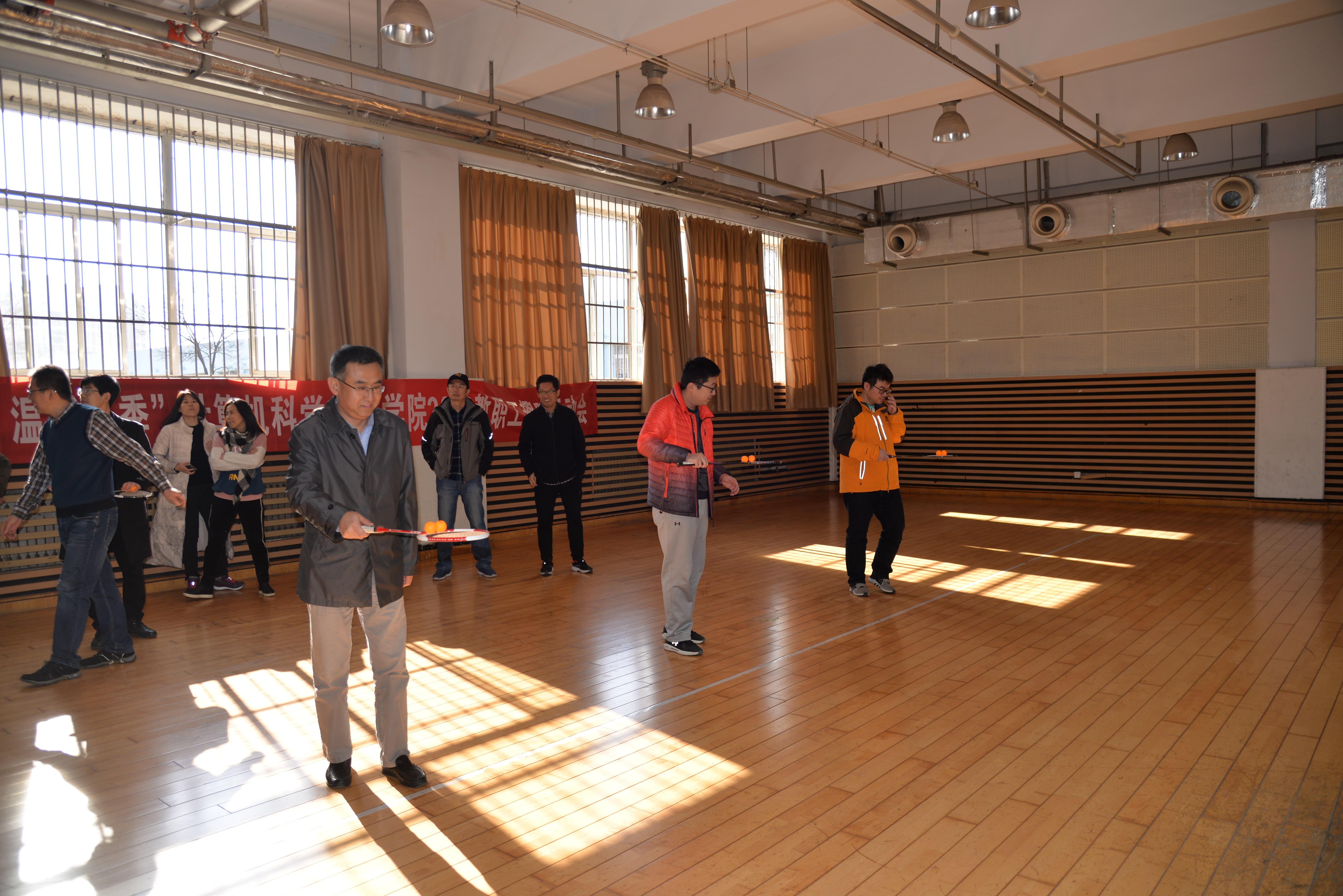 12月6日中午,玩球直播 “活力计科 温暖冬季”2019教职工趣味运动会在体育馆副馆举行。院党委书记尹增刚、副书记周鹏及50余名学院教职工共聚一堂,开展了瞎子敲锣、两人三足、托球跑、滚球击靶、吹气球等多项趣味活动。