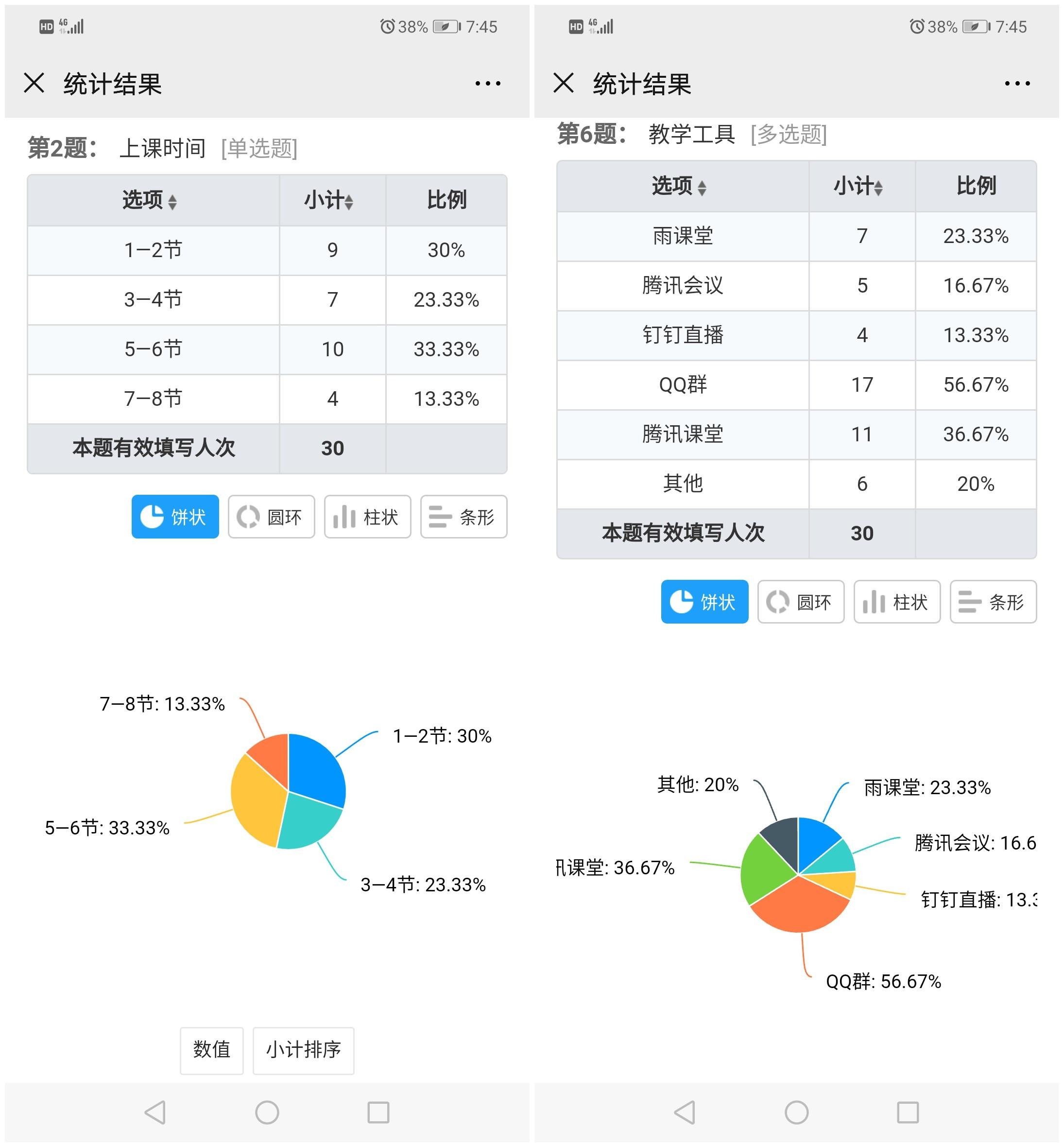 新学期首日的教学任务完成后,学院教学管理人员和全体辅导员面向授课教师和学生发放了调查问卷和意见反馈统计表,及时了解线上授课效果和存在的问题,每位授课教师按要求填写《2020年春季学期学院(学部)课程教学秩序日报表》,在此基础上,学院发布了2月17日教学情况日报表。