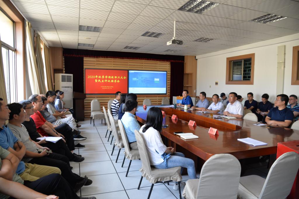 9月17日下午,学院在博知楼510会议室召开2020年秋季学期教职工大会暨专业技术职务民主评议推荐会,传达学校近期重点会议精神,通报和部署教学科研、学科建设、人才培养、管理服务等方面工作,评议推荐2020年度专业技术职务校聘岗位竞聘人。院党委书记尹增刚主持会议,党委组织员武绍学,院党委副书记周鹏,副院长于佳、王国栋和80余名教职工参加会议。