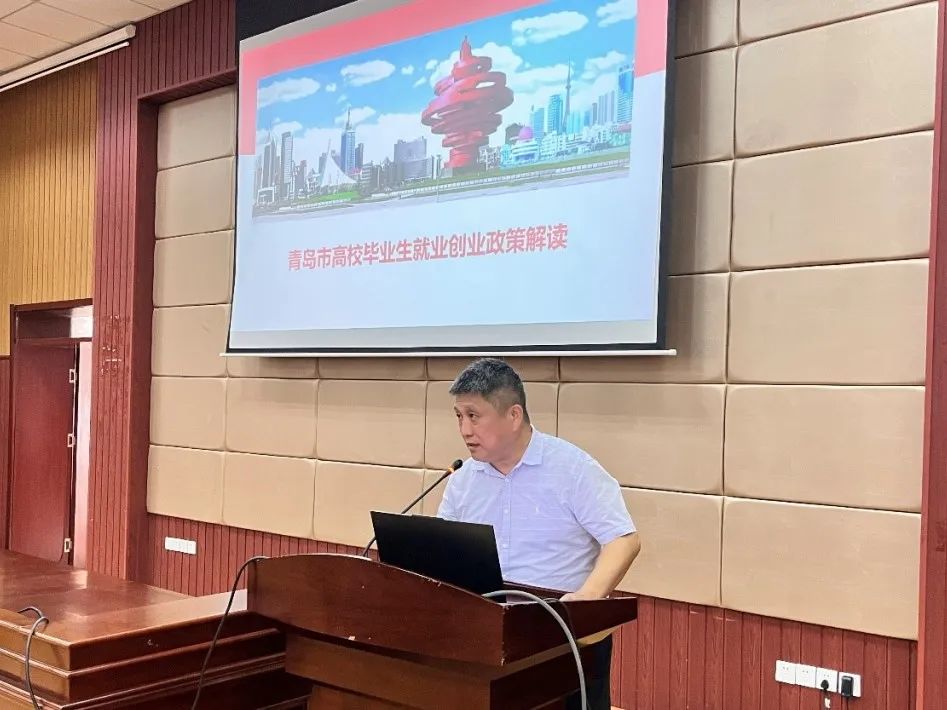 张海勇为同学们详细解读了青岛市高校毕业生就业创业政策。