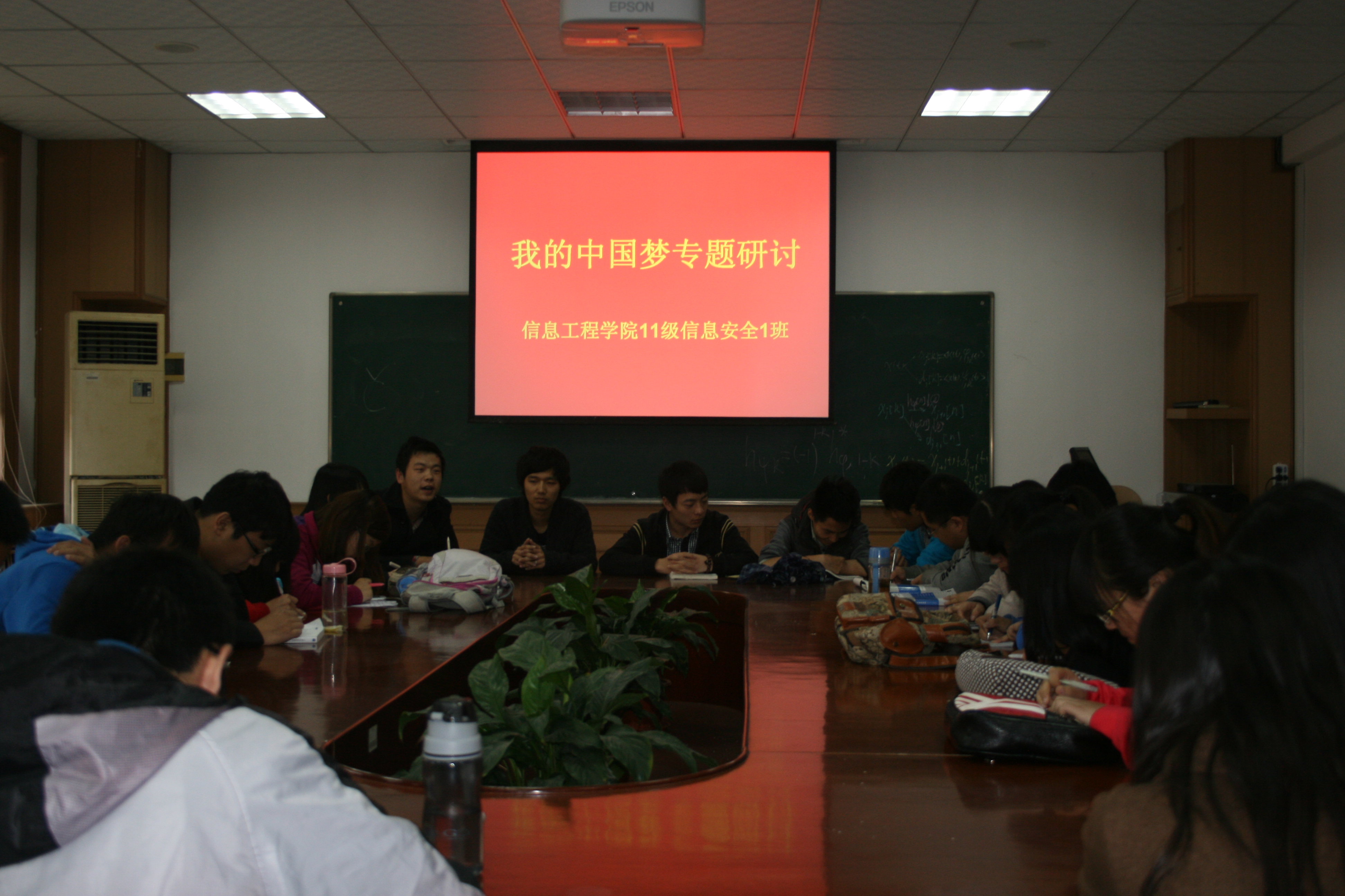 5月3日下午,根据校团委关于组织开展“我的中国梦”线下主题团日活动的要求,玩球直播 2011级信息安全1班全体同学在团总支书记于文洁老师的带领下,围绕“什么是中国梦”、“如何实现中国梦”、“青年学生与中国梦的关系”话题进行互动讨论,同学们积极踊跃参加,分享对“中国梦”的深刻理解。