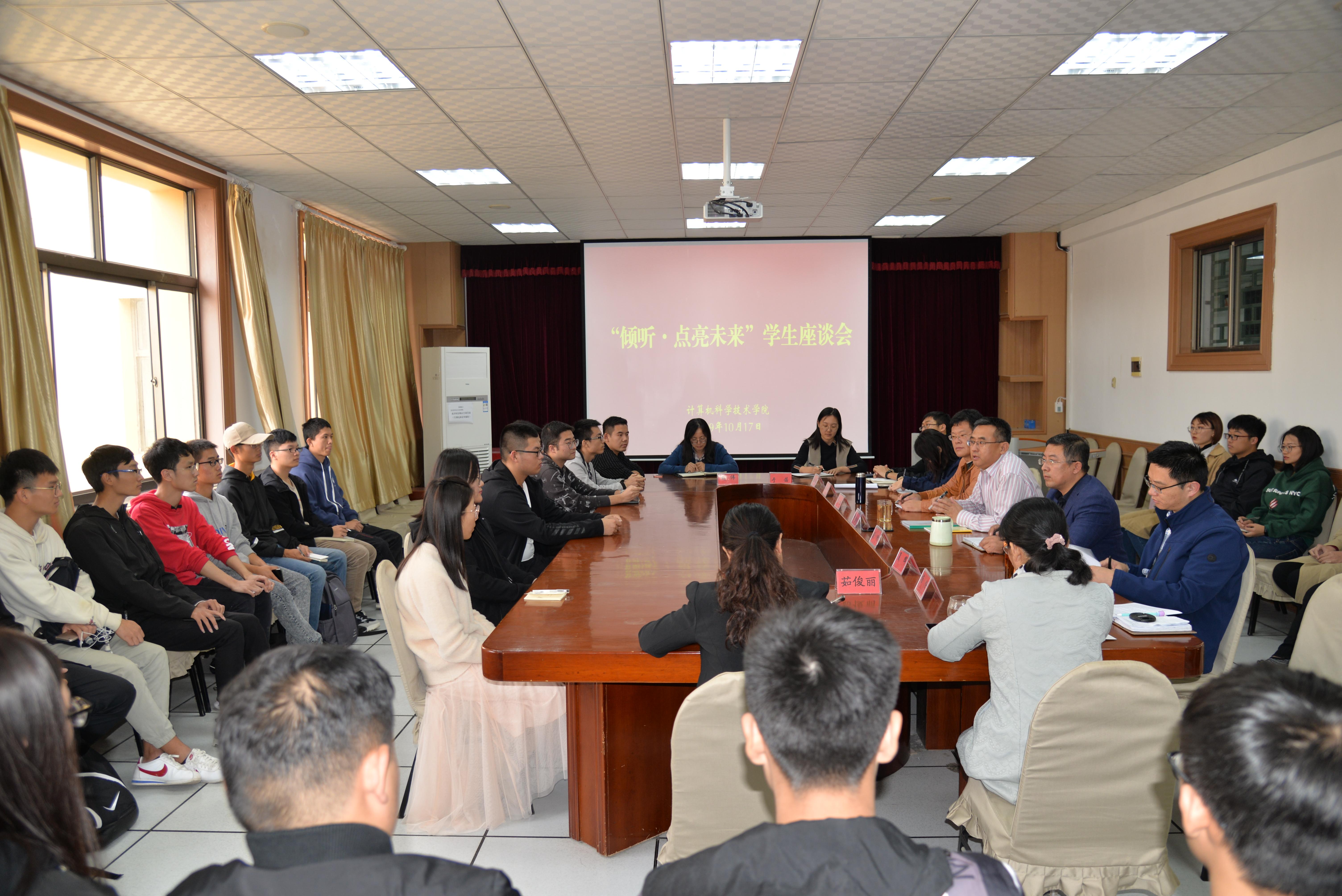 10月17日下午,玩球直播 “倾听·点亮未来”学生座谈会在博知楼510会议室召开。院党委书记尹增刚、副书记周鹏、副院长于佳、院长助理夏辉与30余名本科生和研究生代表共聚一堂,倾听学生在学业规划、课程学习、竞赛创新、日常生活中遇到的疑惑和问题以及对学院改革发展的建议。尹增刚主持座谈会。
