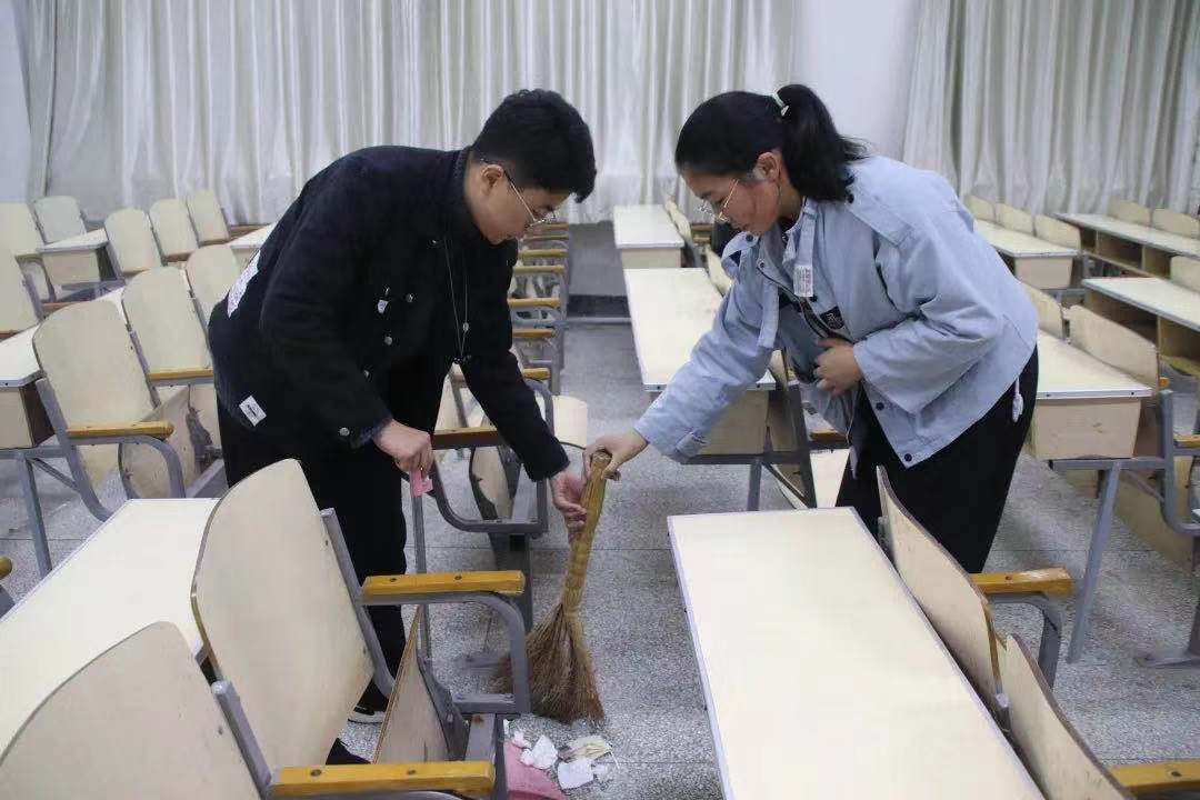 作为老师同学们上课和学习的地方,教室被频繁使用,有些桌洞、教室死角的灰尘很难被清理,容易滋长细菌、产生异味。20名志愿者分组对博知楼一、二、三楼教室进行了认真清理,对桌洞、教室讲台与黑板进行了仔细擦拭。同学们忙碌的身影构成了一道亮丽的风景线,他们积极配合,为共同营造干净舒适的学习环境贡献了自己的力量。