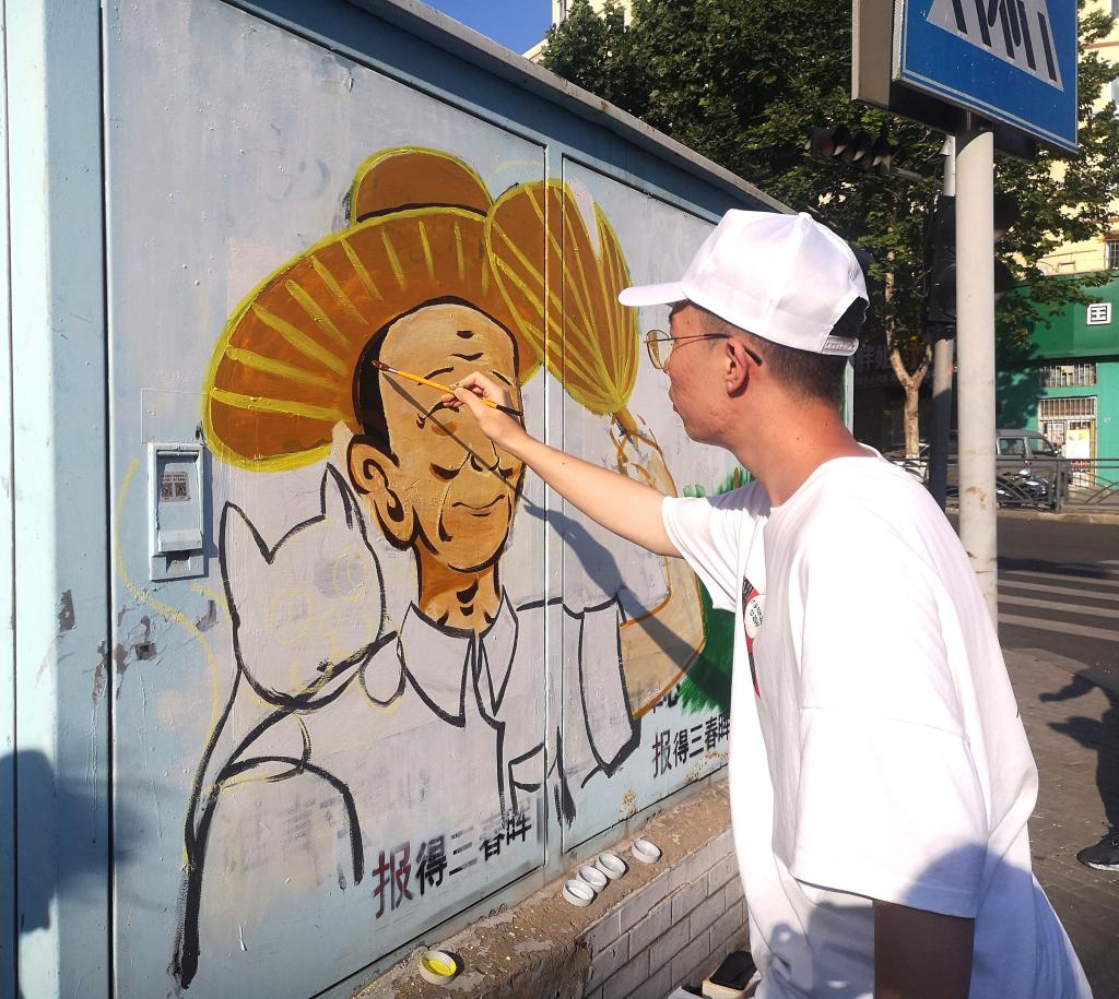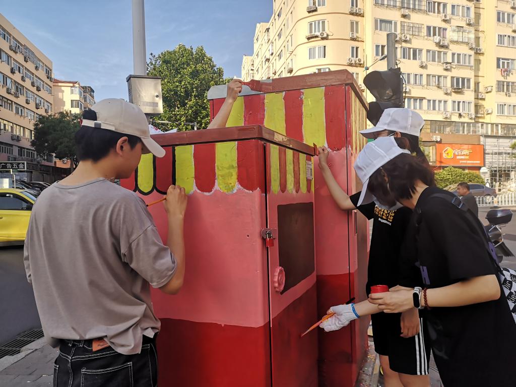 近日,玩球直播 数字媒体专业学生受大港街道新时代文明实践所邀请,以“迎接建党一百周年”“文明出行”“节约粮食”等为主题,为长春路、华阳路周边配电箱绘制彩色“新衣”,助力全国文明典范城市和国家卫生城市创建。