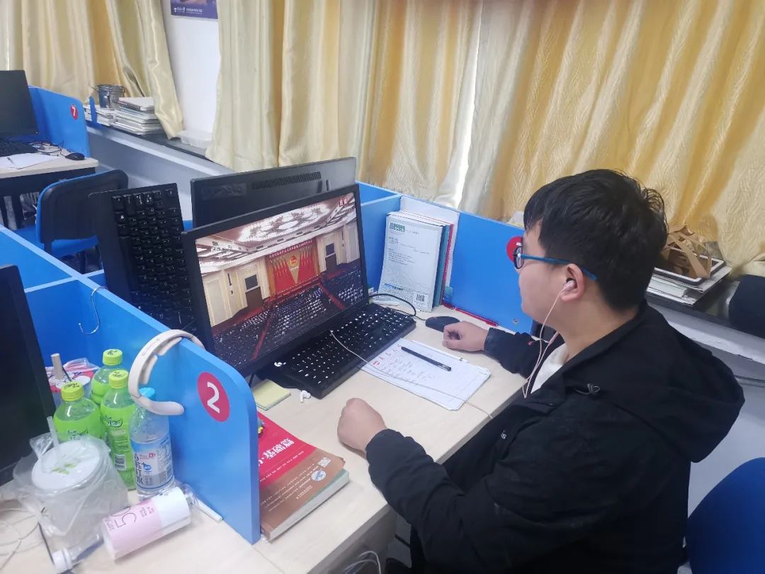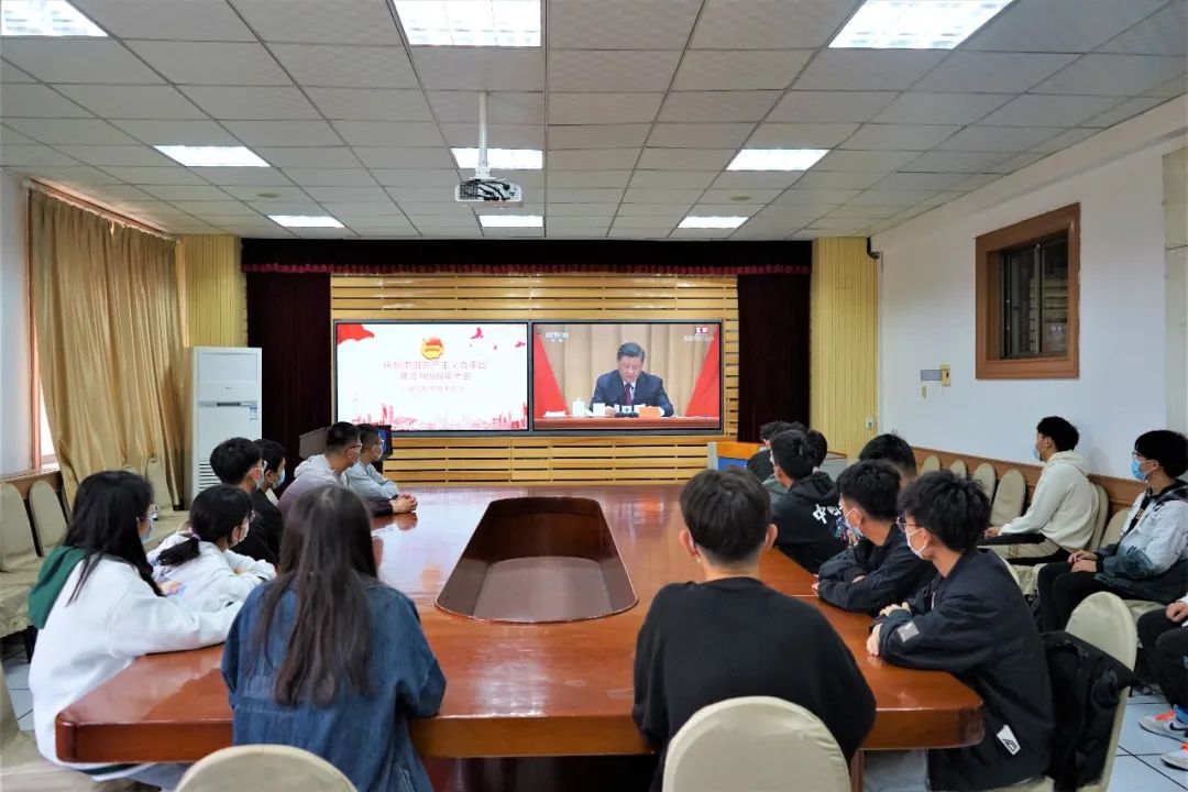 玩球直播 青年团干部在博知楼510会议室集体收看庆祝中国共产主义青年团成立100周年大会,其他青年学子在教室、实验室、宿舍等认真收看。