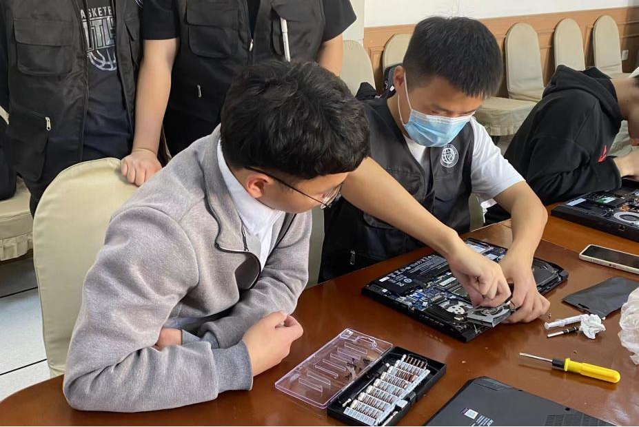 针对同学们的笔记本电脑等移动设备的问题,志愿者们在博知楼510会议室开展了集中维修服务,解决了笔记本清灰、无法开机、重装系统等诸多“硬核”问题。